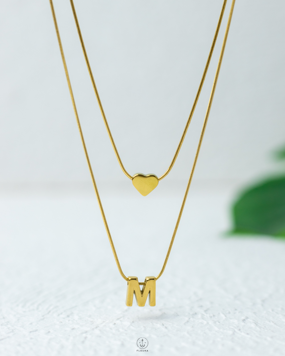 double layer letter m gold necklace